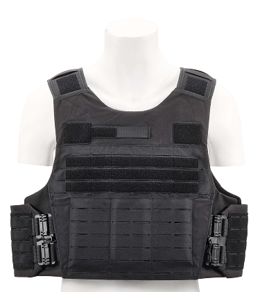 This external tactical vest is designed for maximum protection and functionality, featuring laser-cut webbing and a secure cummerbund closure. It provides front, back, and side protection and is equipped with advanced features to meet operational needs.